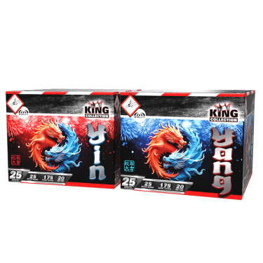 Dubbel plezier met de Yin en Yang. Twee cakes van 25 schoten met kleurrijke effecten. Perfect voor een knallende jaarwisseling.