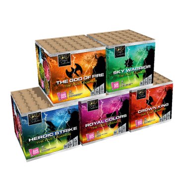 Legendarisch. Deze set van 5 cakes worden de sensatie in de straat. Met 36 schoten per cake en maximaal gevulde tubes heeft elke cake een compleet eigen effect en schiettempo. Opbouwen naar een heftige finale.